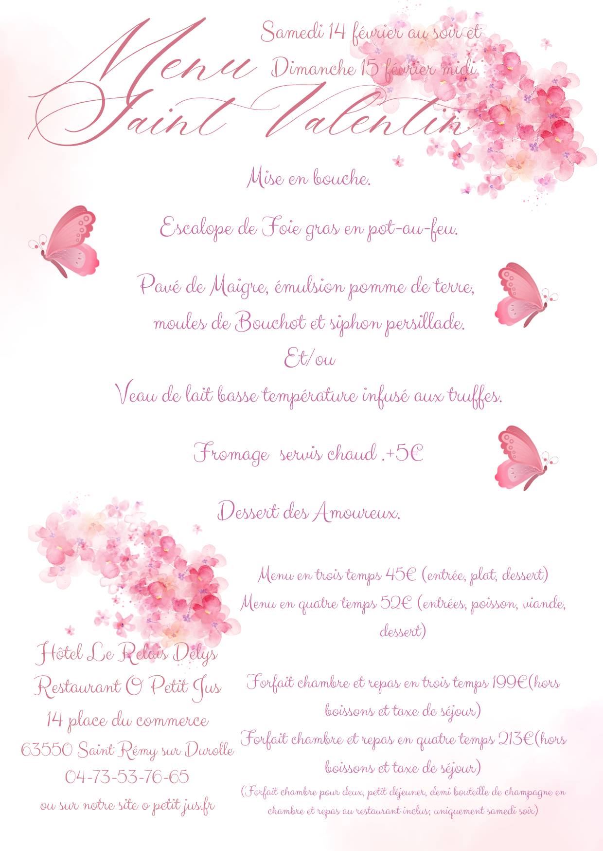 Pour la Saint-Valentin, laissez-vous séduire par notre menu spécial, proposé :
